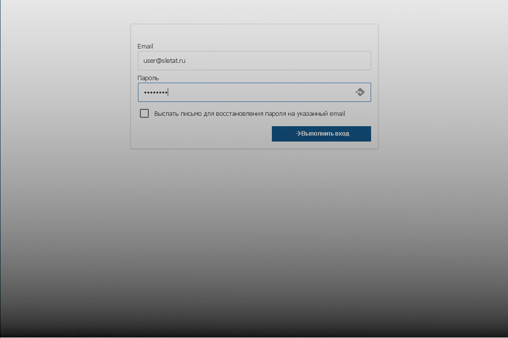 Для входа в CMS используйте полный адрес почты формата user@sletat.ru